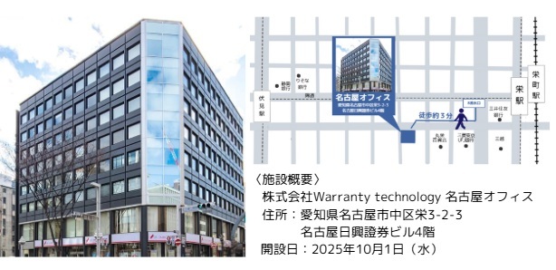 延長保証サービスの構築・運営を行う株式会社Warranty technology(本社:東京都千代田区、代表 取締役CEO:宮原 年明、以下「ワランティテクノロジー」)は2025年10月1日付で「名古屋オフィス」を開設し、東海エリアにおけるメーカー・販売店向け保証・修理サービスの提供体制を強化いたします。