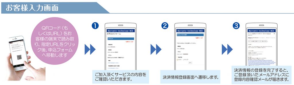 商品ごとに代金を支払うのではなく、一定期間の利用権として料金を支払うサブスクリプション型のビジネスが社会に広く浸透しつつあります。本サービスは、類似サービスと比較し、より短期間で、より低コストなサブスクリプション型課金の仕組みを導入していただくことを実現しています。ワランティテクノロジーは、携帯電話向け保証サービスにおいて長年蓄積してきた月額課金型ビジネスのノウハウを活かし、様々な用途で月額課金型QRコード決済システム(※平成28年5月16日特許取得)を利用いただくことを目的に本サービスの改良を重ねて参りました。