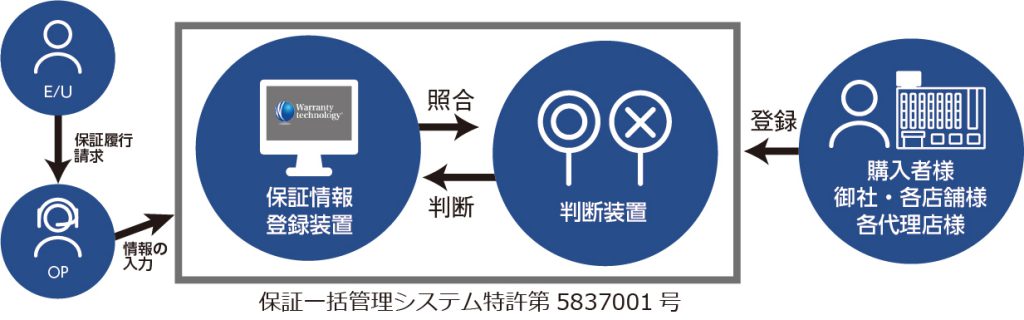 ワランティテクノロジー開発の保証一括管理システムは、製品購入者氏名や購入場所、保証内容、製品識別情報を登録保持。購入者から製品購入情報の入力を受け付けると、それらの情報をキーとしてデータを検索し、検索結果に応じて保証履行の可否を判断する等を特徴とする保証業務の一括管理システムです。複数のシステム、エクセル等で個別に管理していた顧客・製品情報の一元管理を可能とし、企業様の煩雑な情報管理の整理、省力化に貢献します。