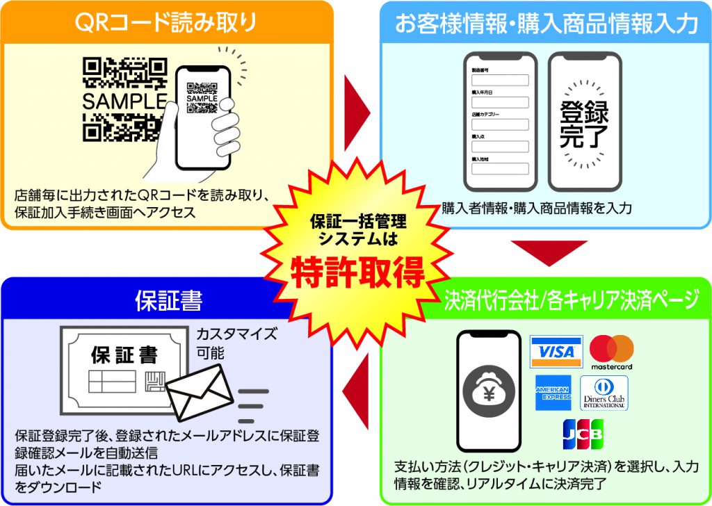 購入者が自ら「専用ORコード」を読み取り、延長保証に加入できる新たな決済システムです。