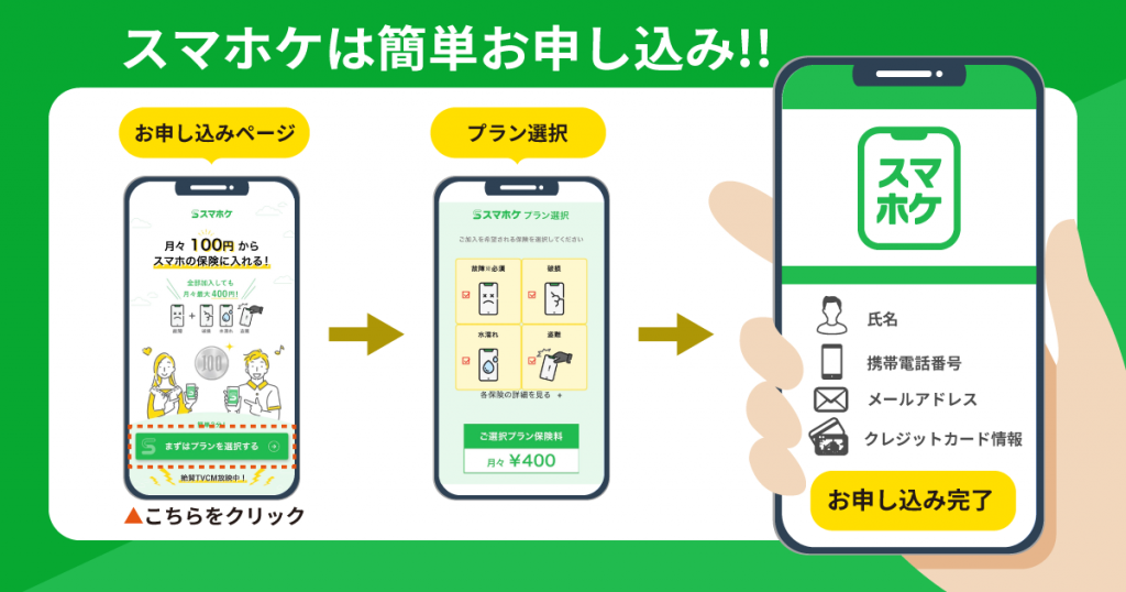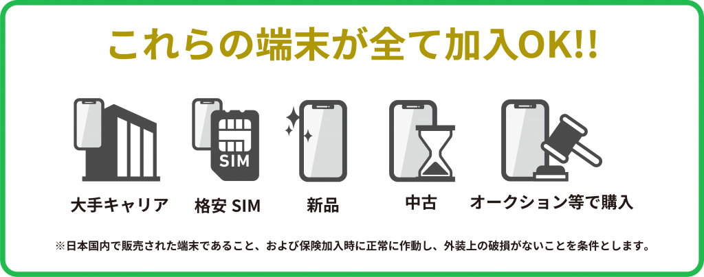 「スマホケ」は、国内で販売された全てのスマートフォン・ガラケーを対象とする保険です。